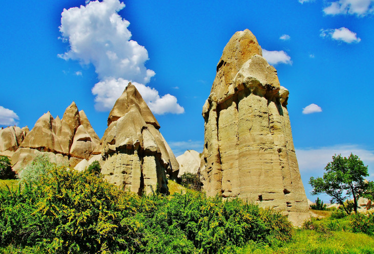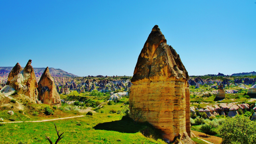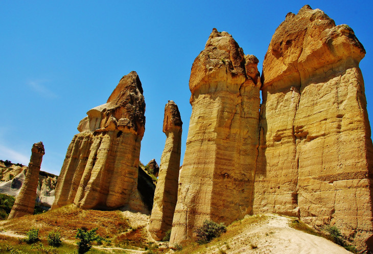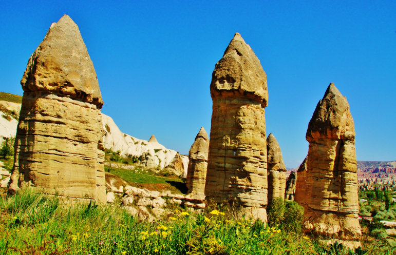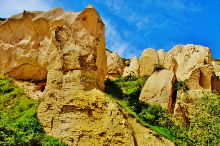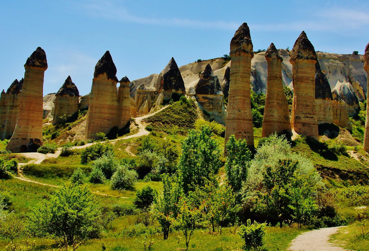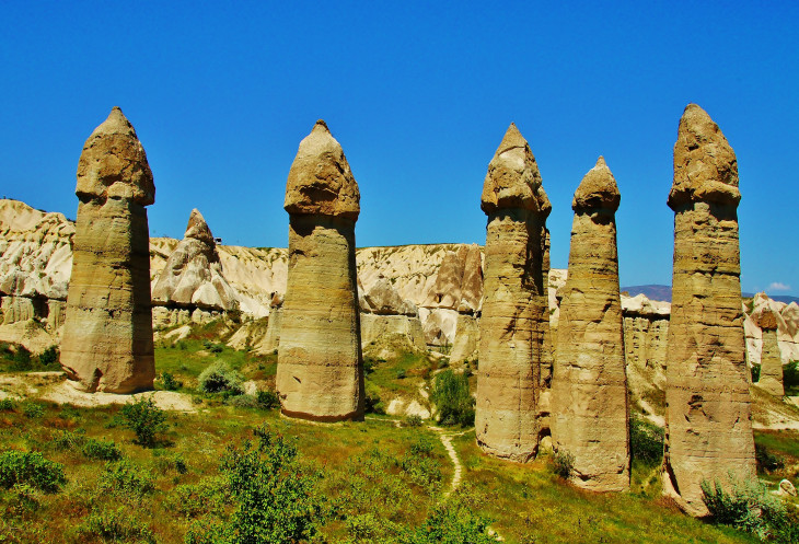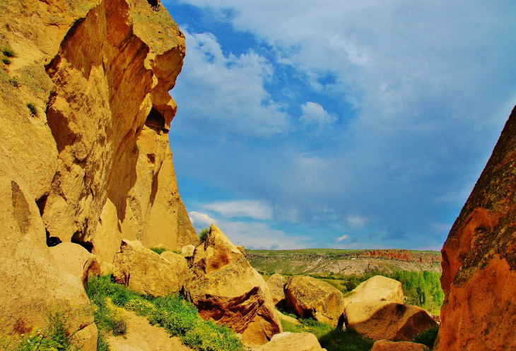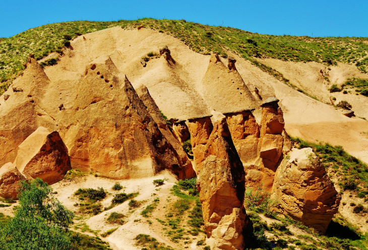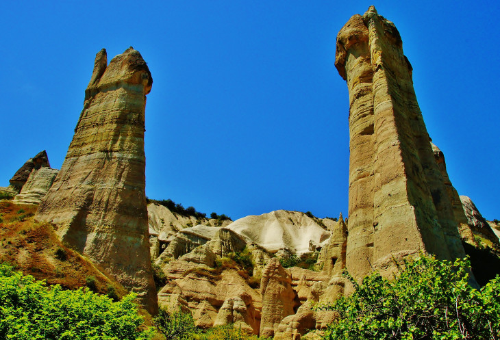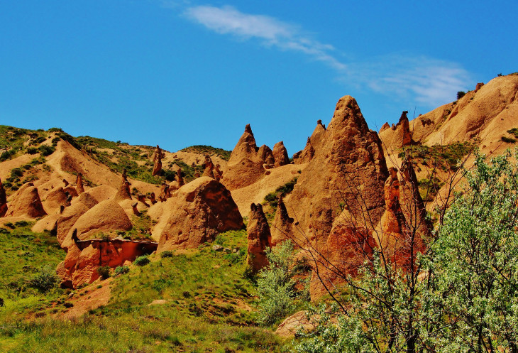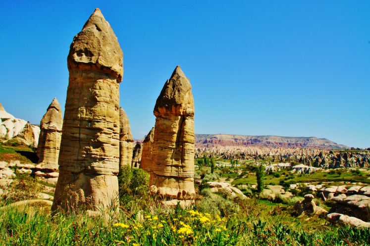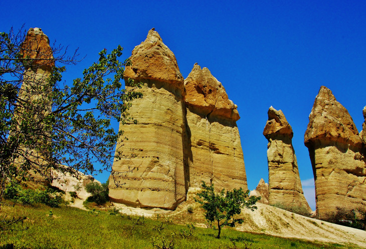 В день приезда у нас был запланирован самый короткий из походов – по долинам Zemi и Görcelid. Как оказалось, чтобы попасть в долину Görcelid, нам было нужно просто подняться на вершину холма и спуститься с другой его стороны. Мы же, строго следуя инструкции, потащились в обход через весь поселок. Оказавшись, наконец, в долине Görcelid, мы застряли там надолго, прогуливаясь вокруг ее каменных столбов.