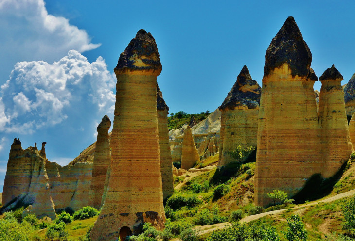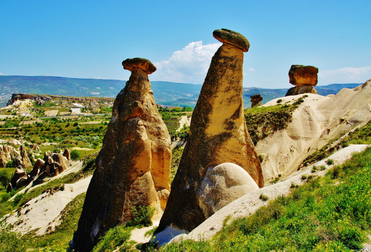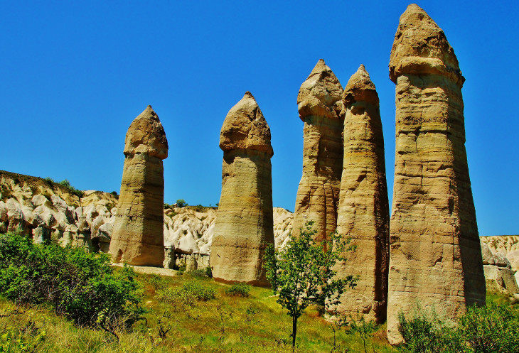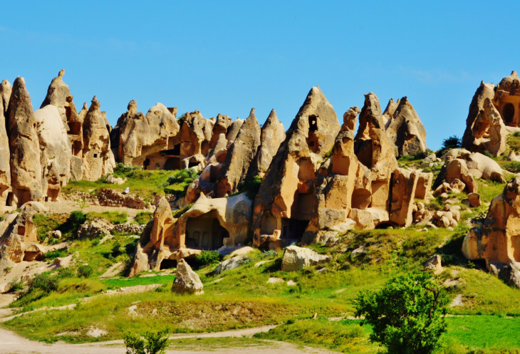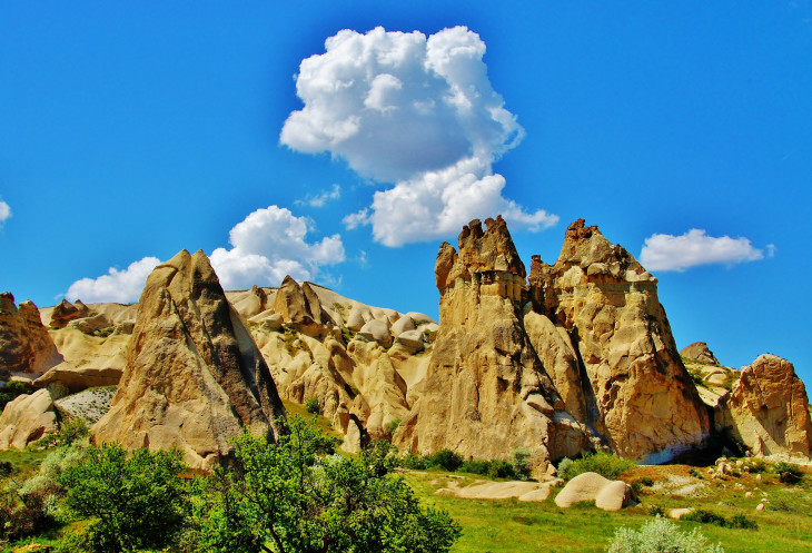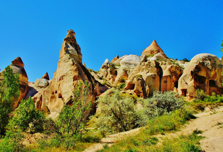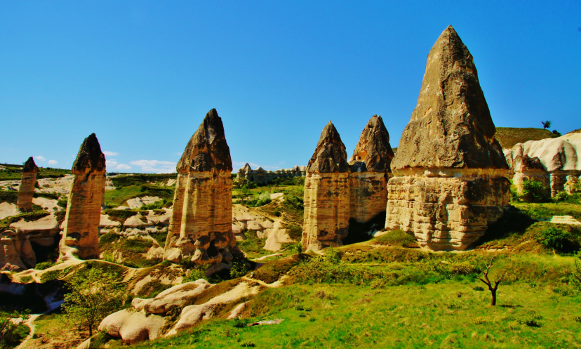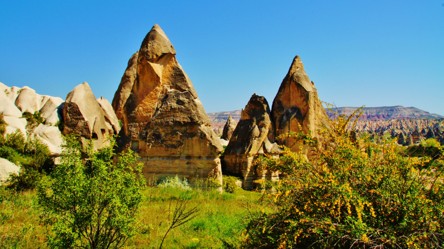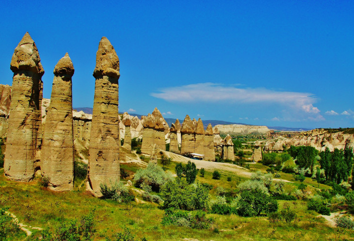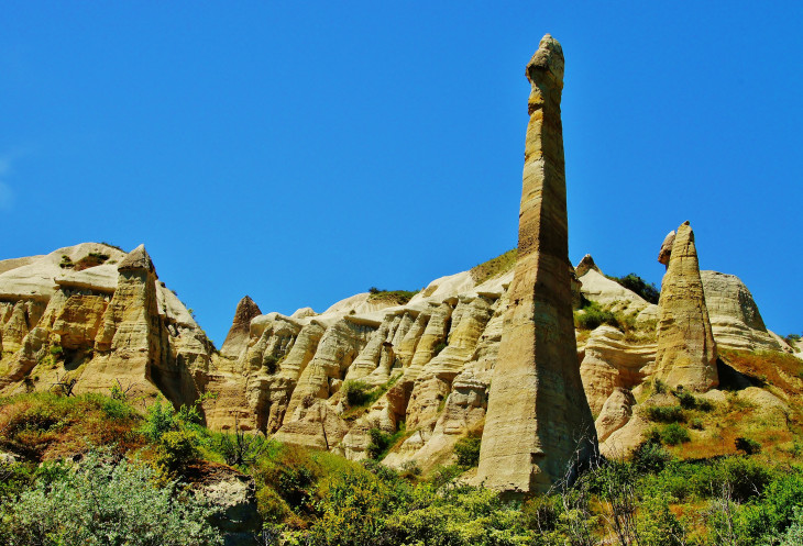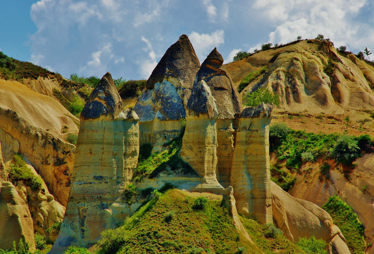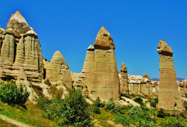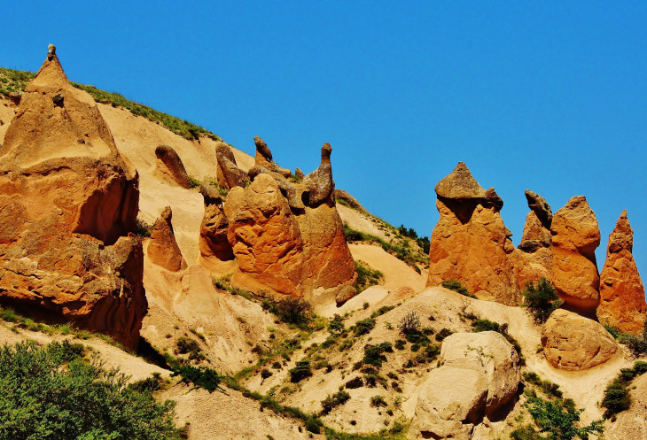 В день приезда у нас был запланирован самый короткий из походов – по долинам Zemi и Görcelid. Как оказалось, чтобы попасть в долину Görcelid, нам было нужно просто подняться на вершину холма и спуститься с другой его стороны. Мы же, строго следуя инструкции, потащились в обход через весь поселок. Оказавшись, наконец, в долине Görcelid, мы застряли там надолго, прогуливаясь вокруг ее каменных столбов.