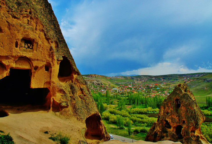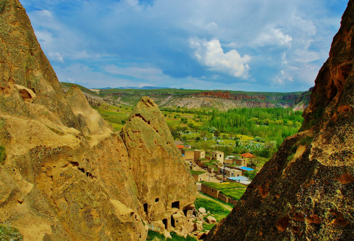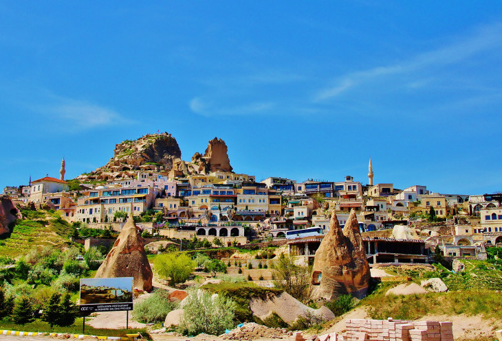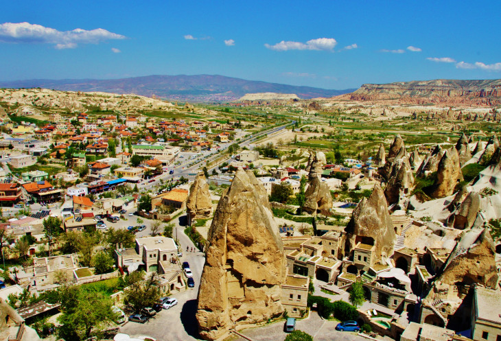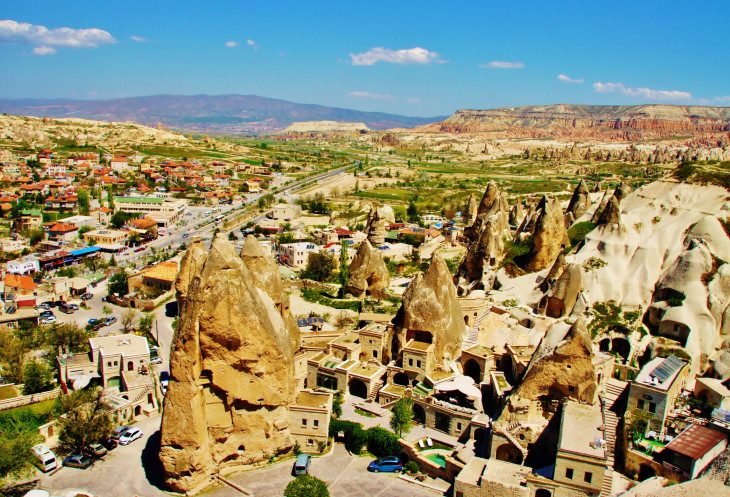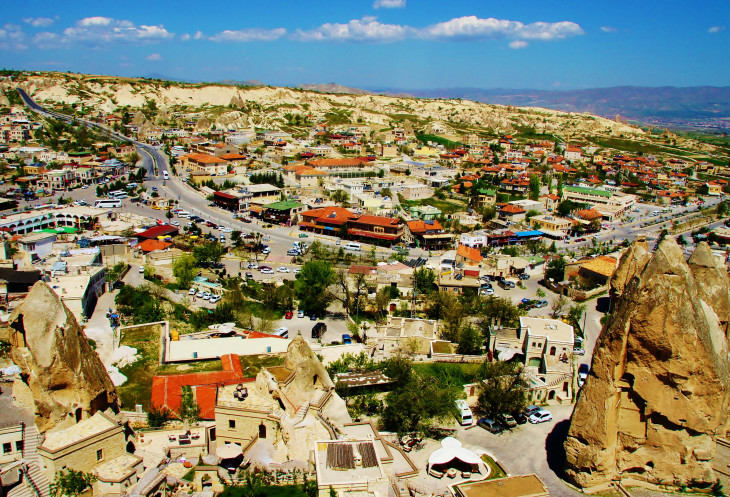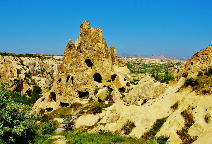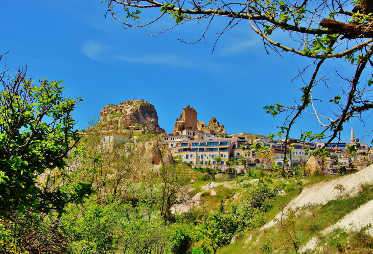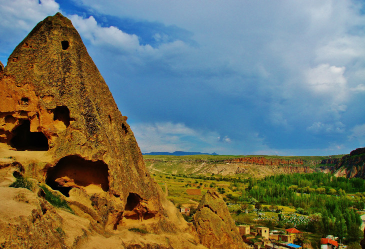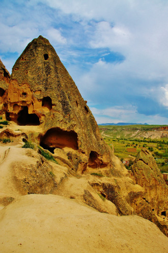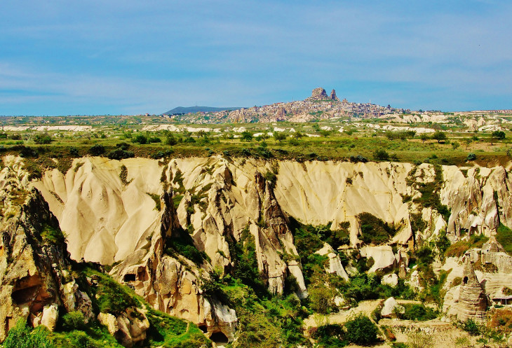 Вид на Учхисар со стороны Голубиной долины