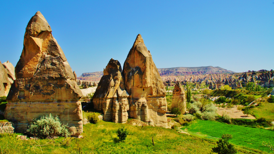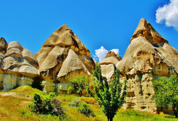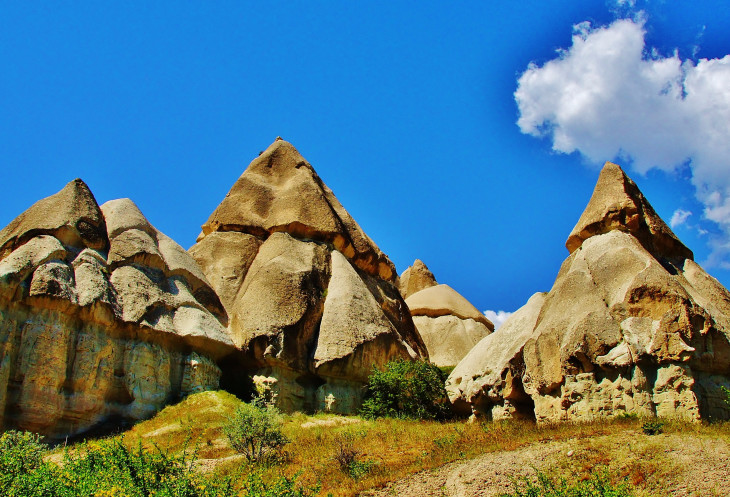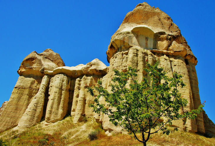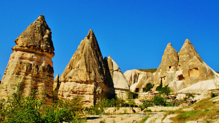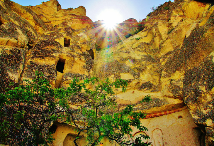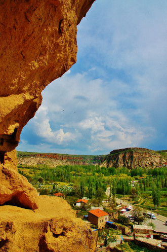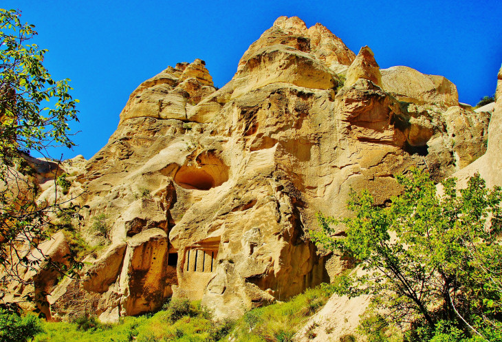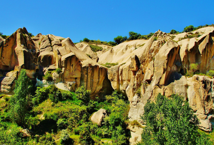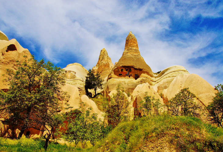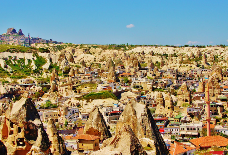 Вид на Учхисар со стороны Голубиной долины