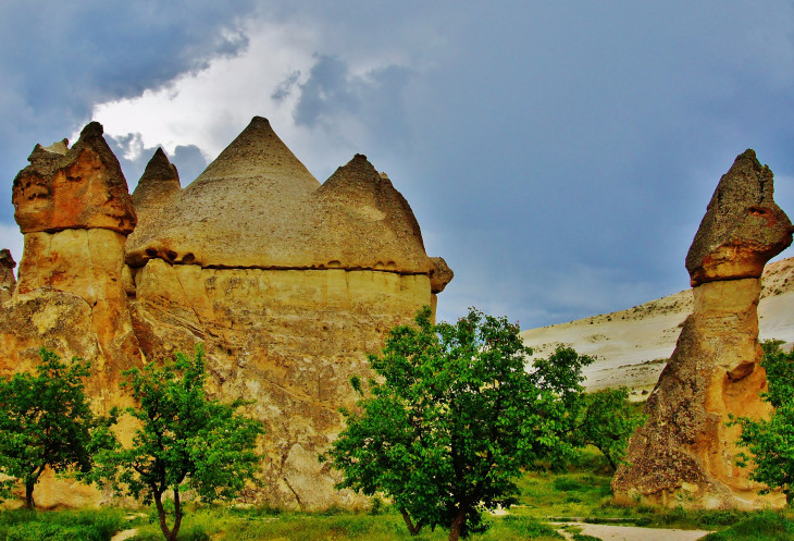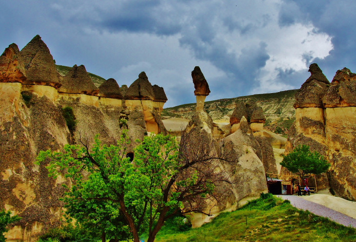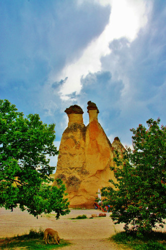 Пока мы без дела шатались возле фабрики, погода начала портиться: небо заволокло тучами, поднялся ветер, что несколько омрачило наш визит в чудеснейшее место под названием Paşabağ. На мой взгляд, эту достопримечательность Каппадокии, наряду с Долиной Любви, нужно посетить просто обязательно. Здесь как будто собраны всевозможные виды самых причудливых скальных образований. Не могу сказать, что нам выделили слишком мало времени для самостоятельного осмотра, но его, конечно же, было недостаточно. Стоит отметить, что здесь, в противоположность Долине Любви, бывает огромное количество народа. Несмотря на это, в следующую поездку в Каппадокию я обязательно включу самостоятельный поход в Paşabağ: хочется вновь испытать это удовольствие и осмотреть все более подробно.