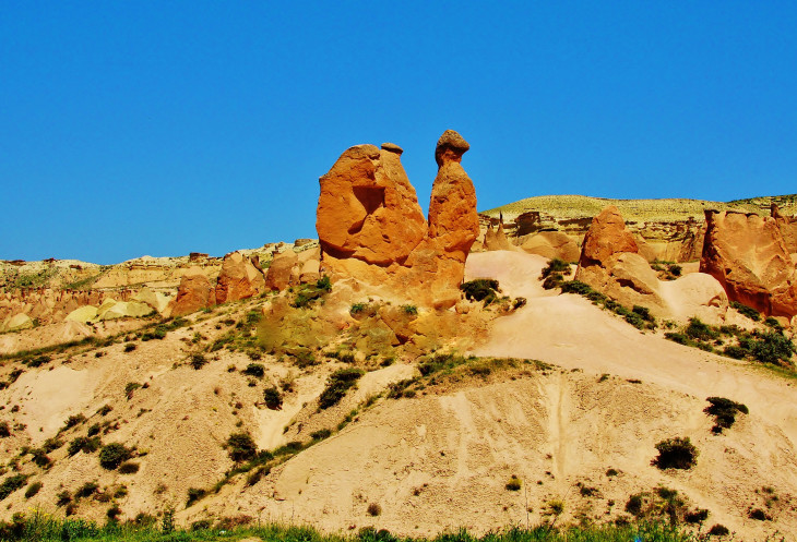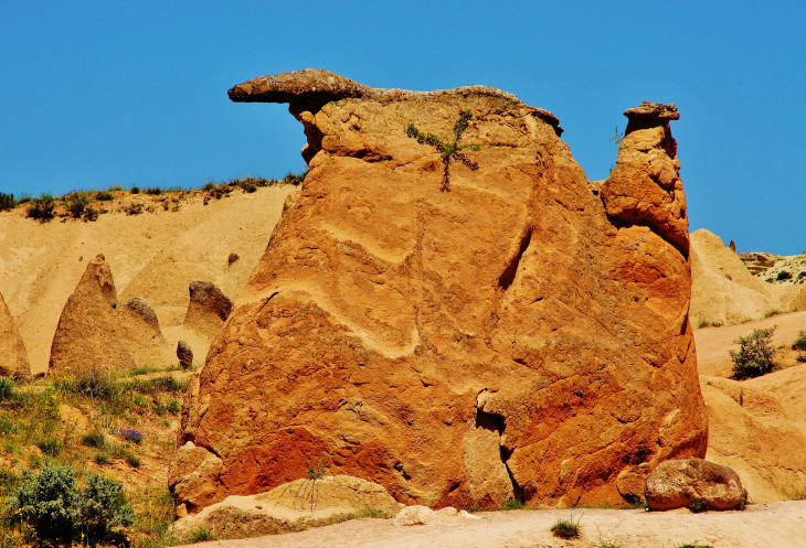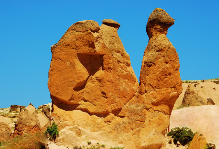 Также быстренько мы забежали на смотровую площадку в Çatalkaya, чтобы взглянуть на визитную карточку Каппадокии - знаменитую «грибную семейку», а за ней – в сказочную долину Dervent, известную своим «оранжевым верблюдом» и другими «скульптурами», в отличие от верблюда, отдаленно напоминающими тех или иных животных.