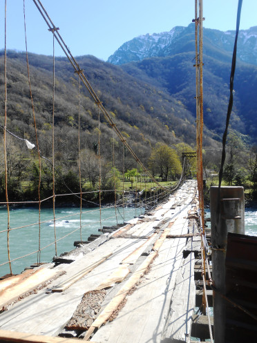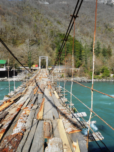 - висячий мост через реку Бзыбь с не внушающей доверия конструкцией из латанных деревяшек, по которой однако не раз перегоняли стада коров.
