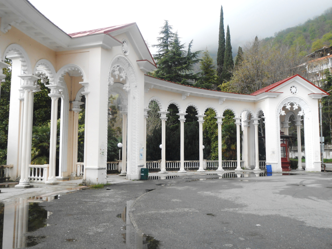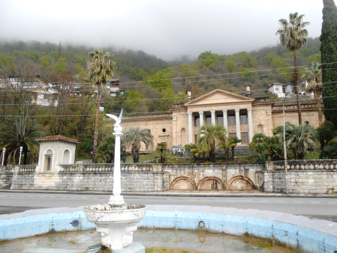 В довершение хотелось бы поведать о нашем небольшом приключении, без которого не удалось бы понять этот гордый кавказский народ. Посещали мы Абхазию не в сезон (в начале марта), поэтому для того, чтобы добраться до Рицы пришлось обратиться к одному из водителей такси, поскольку рейсовых или туристических ТС не нашлось. Сбив цену и остановившись на трех тысячах рублей за поездку и экскурсионное сопровождение до знаменитого озера Рица с одновременным посещение водопадов Девичьи и Мужские слезы и форелевого хозяйства в селе Отхара. Выехать планировали на следующий день с утра, а на тот же день договорились осмотреть вместе с ним старую и новую Гагру за 1000 руб. с заездом на смотровую площадку, расположенную по дороге на гору Мамзышха. В качестве пляжного курорта черноморское побережье Гагр хорошо подходит, в новом городе осматривать особо нечего, старый же город не богат на достопримечательности. Но прогулка по приморскому парку и эвкалиптовой аллее оказалась на редкость приятной, особенно в сопровождении рассказов водителя-экскурсовода о кухне, быте, жизни местного населения.