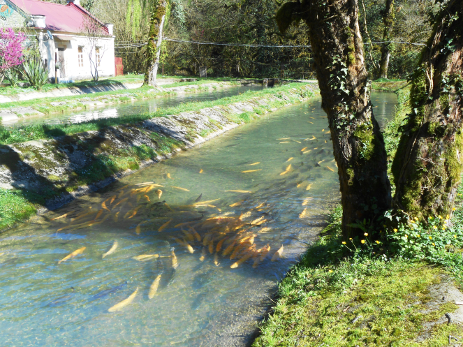 Потап как и обещал свозил нас в село Отхара, где находилось форелевое хозяйство. Его друг-сторож провел нас вглубь к прекрасной реке и чудесным пейзажам, разрешил подловить форелей и показал еще не изученную и не открытую для массового посещения подводную пещеру с шахтообразным проходом, от которой зарубежные спелеологи остались в восторге.