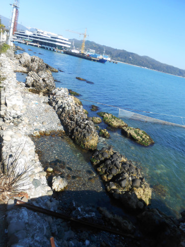 Отдельного упоминания стоит пляж и набережная Пицунды. Вдоль всего берега метрах в двадцати от самого моря растут Пицундские сосны, на морском горизонте возвышаются горы, а сама береговая линия очень широкая и просторная.