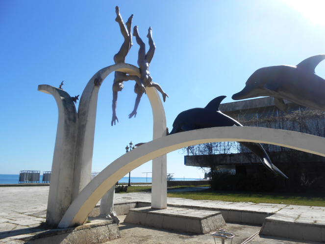 Здесь можно насладиться неспешной прогулкой и увидеть плескавшихся в море дельфинов, скульптуры "Ныряльщики" Церетели,