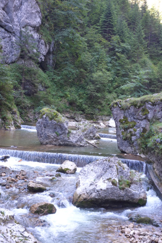 На Красное озеро мы заехали после ущелья Биказ, очень красивого и внушительного. Несколько портят его многочисленные сувенирные лавки, вдоль которых приходится идти с риском для жизни, потому что по узкой дороге ущелья постоянно едут машины и туристические автобусы. Среди сувениров меня привлек магнитик с натуральными эдельвейсами, но покупать не стала: второй холодильник мне ставить некуда, а на первом практически нет места.