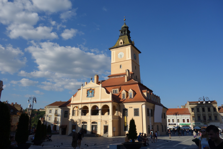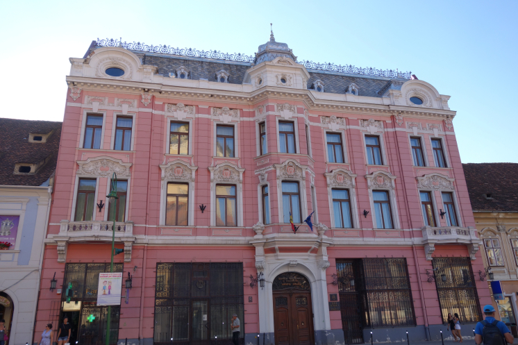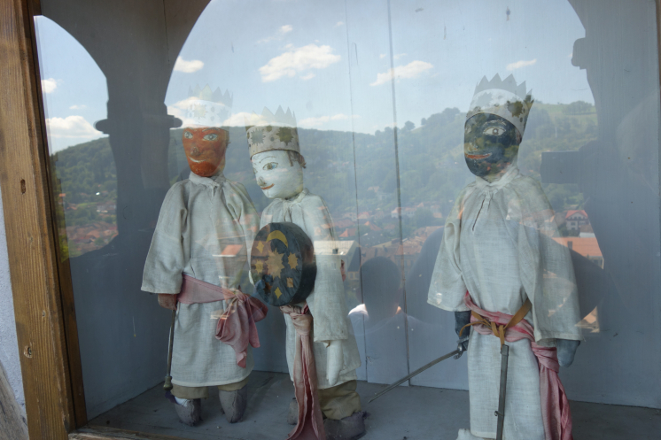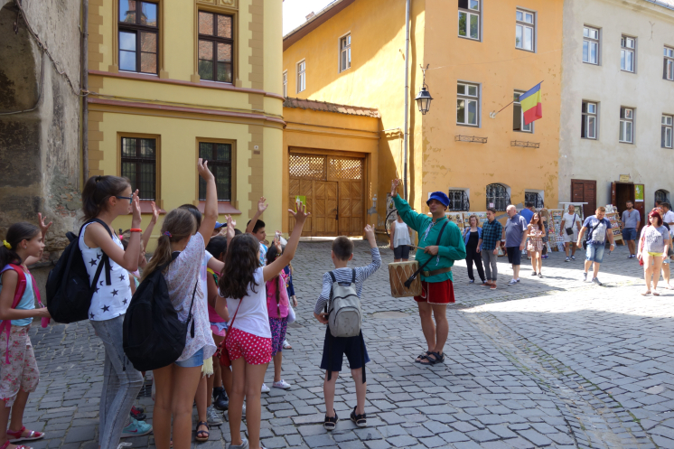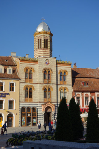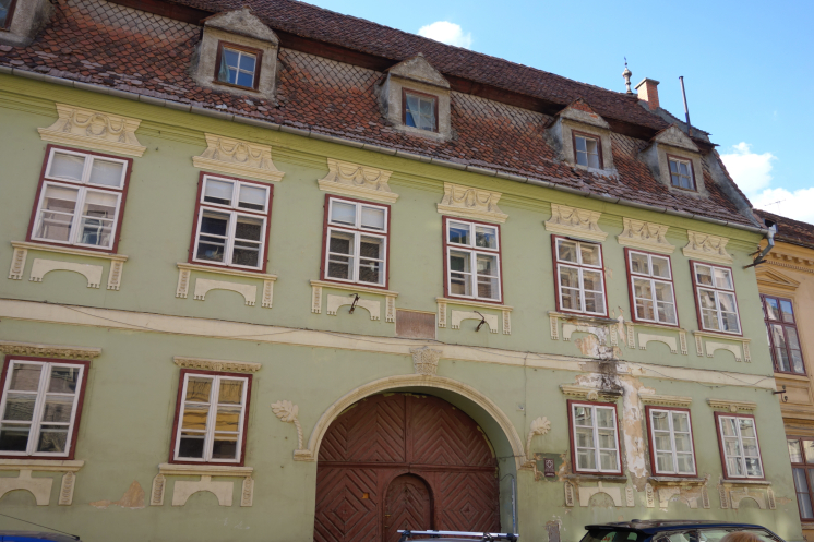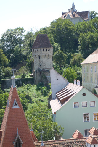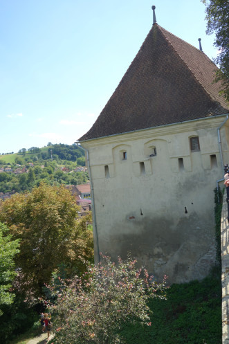 В Сигишоаре я была в прошлом году, по моей просьбе опекавшая меня в Совате представительница Робинзон-Турса заказала такси, которое нас подождало, пока мы осматривали крепость. Только представительница, венгерка по национальности, называла его исключительно Шегешвар — так назывался город до передачи Трансильвании Румынии. Мне все равно, хоть Шессбург, как его называли саксонские поселенцы, основавшие город в 13 веке. Конечно, мы тогда только крепость осмотрели, очень неплохо сохранившуюся. В информационном центре мне тогда за 50 бань продали карту крепости, где на румынском и английском были описаны все достопримечательности, по которым мы и прошлись. В этот раз я поднялась таки на Часовую башню через исторический музей. Музей скромный, но мимо него на смотровую площадку не пройдешь. На перилах площадки установлены таблички с расстоянием до основных столиц. И еще посидела в скверике на площади Германа Оберта, полюбовалась на дом Общества ремесленников, пока перекусывала.