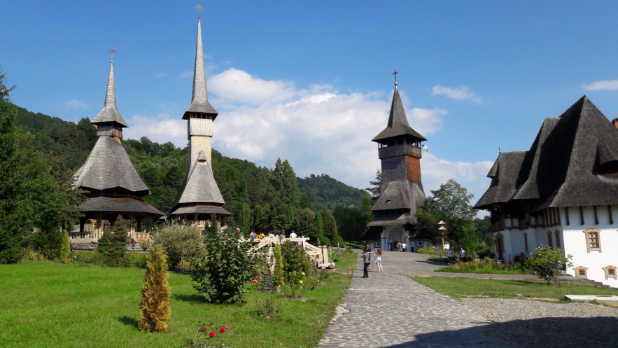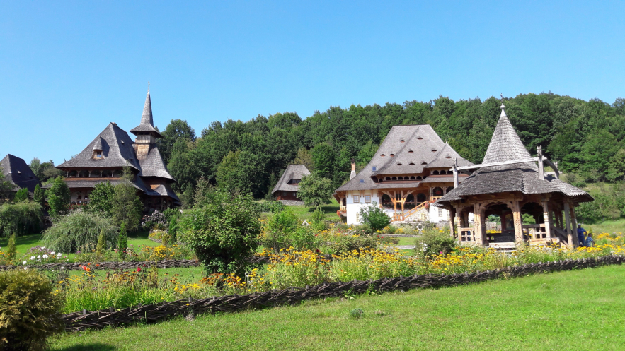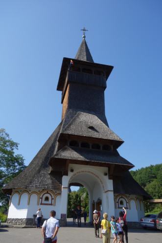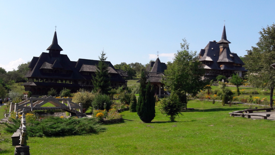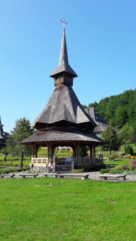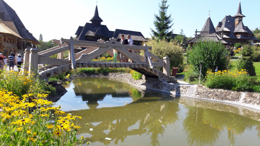 После обеда и посещения Веселого кладбища заехали в современный монастырь Бырсана, отстроенный в стиле Марамуреша. Красивые здания, ухоженная территория, но для монастыря слишком суетное место. В одном водоеме увидела, кроме затонувшей мелочи, плавающие купюры небольшого достоинства. Сначала удивилась, а потом вспомнила, что в Румынии деньги пластиковые и от воды им ничего не будет.