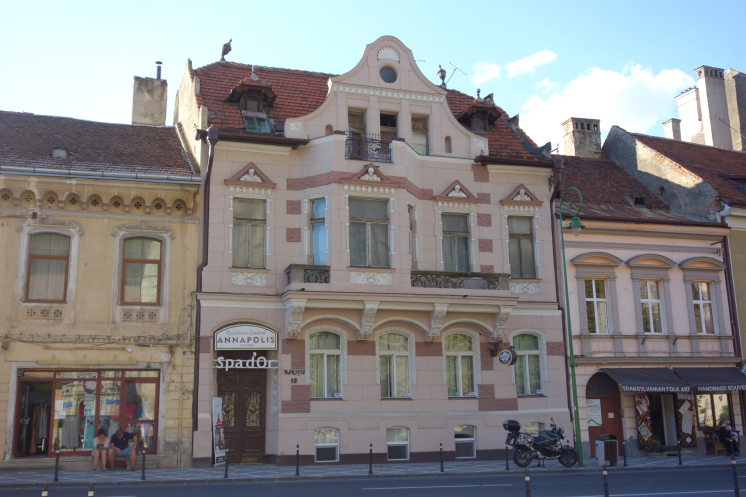 Ночевали мы в Пятра Нямц. К отелю подъехали одновременно с большим туристическим автобусом, кажется, с испанцами. Но у нас было преимущество — маленькая группа, мы быстрее разобрали багаж. Пережидать, пока расселят большой автобус, было бы утомительно. И мы попали под торжественную встречу с румынским караваем: не объяснять же, что мы из другой группы. Каравай был интересный, в виде плетеного калача с маком, и на вкус приятный. Про город ничего не скажу: я видела из окна только фуникулер, пару церквей и громогласные уличные кафешки на площади. Похоже, в Румынии принято врубать музыку в кафе на оглушительную мощность — в прошлом году в Совате я тоже от этого страдала и в этом в Сибиу. Одно утешает — музыка гремит не слишком поздно.
