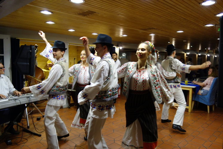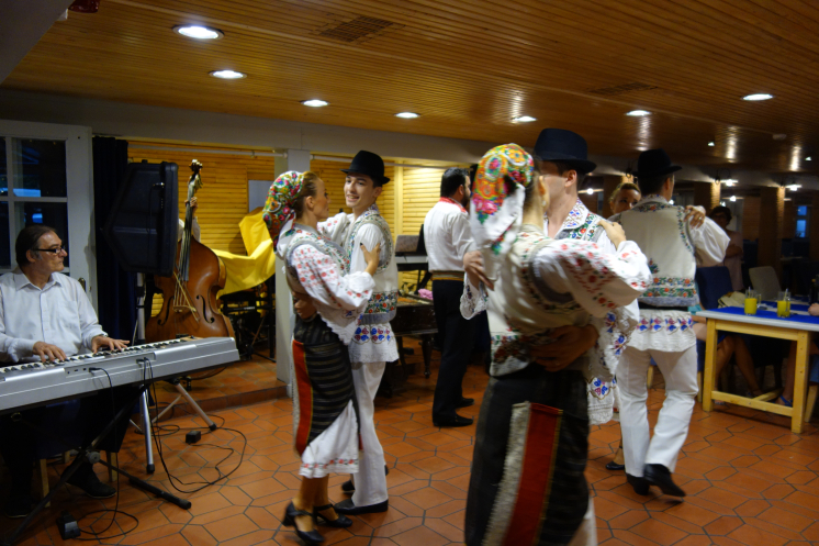 Фольклорный ужин — обычное шоу для туристов, там еще болгарская группа сидела за соседними столами. Но дядька, игравший на национальной свиристелке типа губной гармошки, состоящей из нескольких соединенных трубочек разной длины, оказался виртуозом. Уж как он играл и птиц изображал! Болгары ему денежки в карман совали.