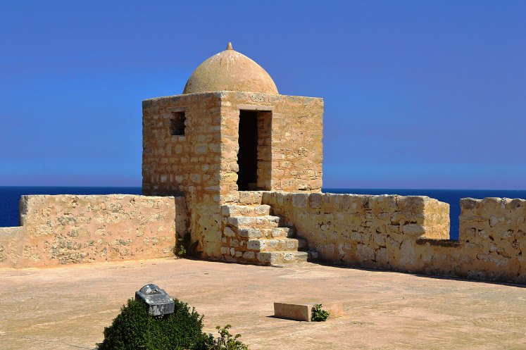 На холме полуострова, на мысе Африка ,расположилась крепость Бордж эль-Кебир.