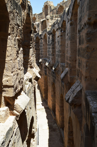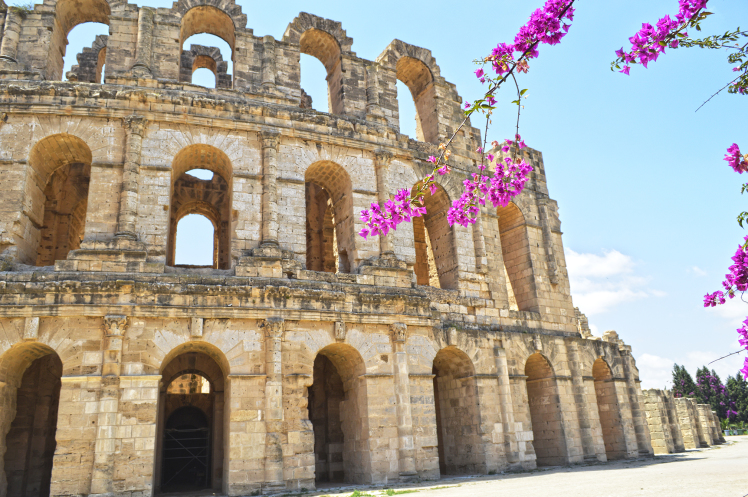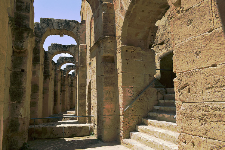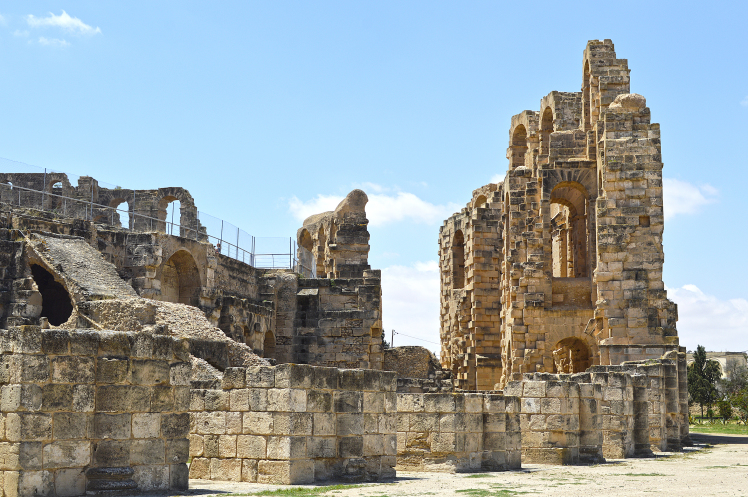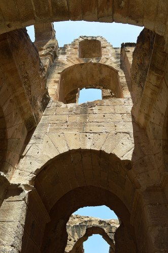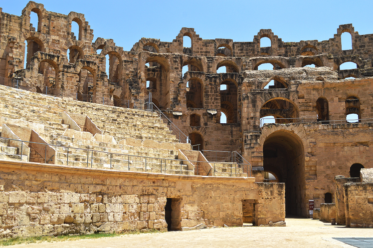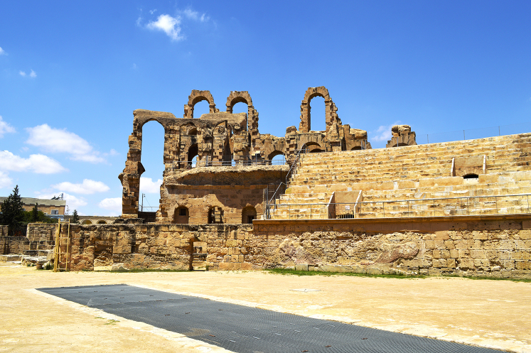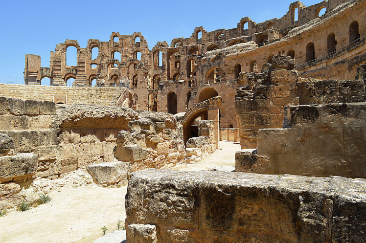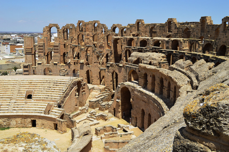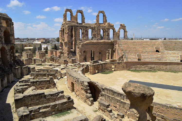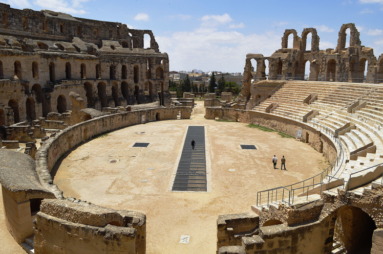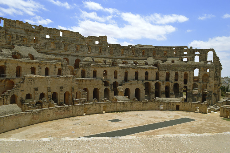Амфитеатр в Эль Джеме третий по размерам,после Колизея в Риме и амфитеатра в Капуе.Но зато первый по сохранности.Этот амфитеатр был построен в 238 году.Но в связи с восстанием не был достроен,правда до сих пор неизвестно на каком этапе прекратилось строительство.