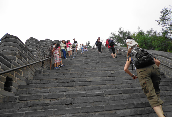 Гулять по ней мы пошли вдвоем с мужем. Условившись с гидом о времени возвращения. Места там очень красивые, но ступеньки просто убивают, они все имеют разную высоту от 5 до 30 см. Шли пока окончательно не устали. Очень нас шокировал запах и китайцы, позволяющие своим детям справлять нужду рядом со стеной и даже на ней. Такое мы еще не раз встретим в Китае.