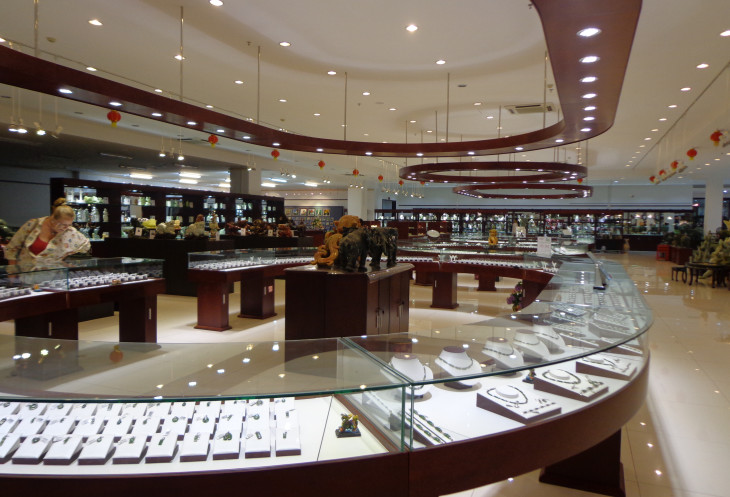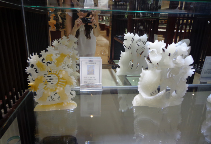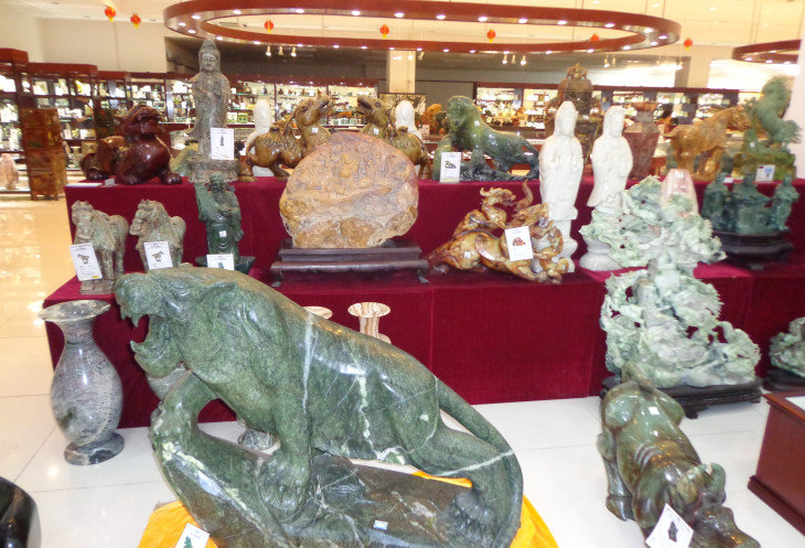 Там было огромное количество всевозможных украшений, картин, сувениров и разных предметов из нефрита. Некоторые вещи потрясали своими размерами и красотой.