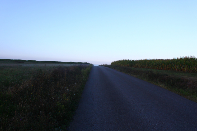 Завтрак в итоге был у меня здесь в районе 11-30... завтрак. На голодный желудок идется очень хорошо, бодро, но все мысли только о еде. И когда я поела... пришли плохие мысли. Думаю да… все это дождь виноват. Он заглушил все приятные звуки леса, птицы не пели, я слышала лишь стук капель о мой пончо, видела лишь, как дождь капает с моего козырька в лужи под ногами, и чувствовала мои сырые пресырые ноги, штаны липли к коленкам, как не натягивала/оттопыривала я дождевик. Дабы остановить, или хотя б приглушить этот поток грустных мыслей (слишком уж они были громкие), я стала петь песни… Но как назло ничего не шло в голову кроме припевов: «Дым сигарет с ментолом», «Дождь», «Сигарета мелькает во тьме», «Неизбежность», и т.д. и т.п. И все только припевы. Наборчик так себе, для поднятия настроения. Как и следовало ожидать, они не помогали мне справиться с этой черной тучей в моей голове. И тут я поняла, что первый раз за Путь я хочу музыку. Наушники не было возможности отыскать в рюкзаке, ведь его не куда поставить – вокруг сплошная вода. Так что врубила погромче свою депрессивную музыку, и она звучала у меня внутри дождевика, вырываясь в лесную дождливую тишину километров 5-8. И выключить пришлось не по тому, что надоело, а так как лес закончился. По дороге не слышно ничего, это были как раз самые сложные последние километры.