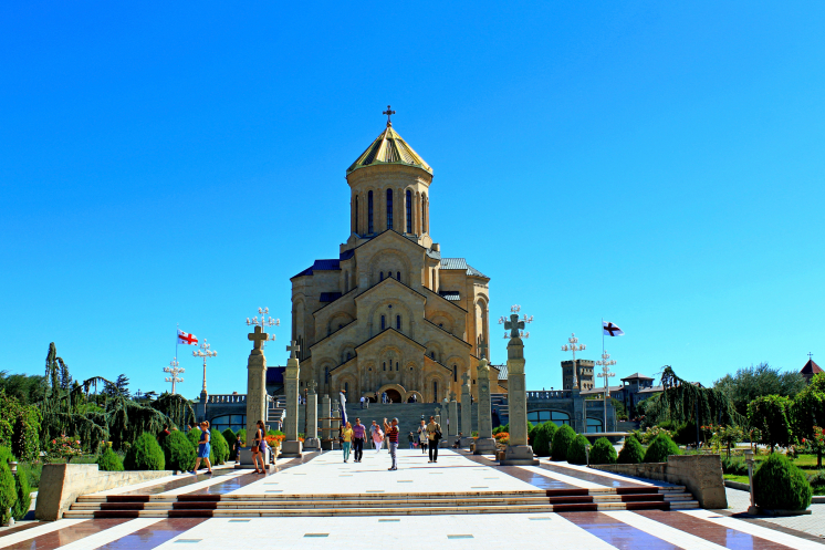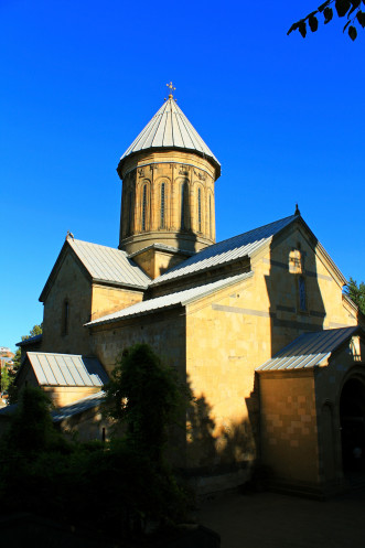 Практически весь трафик из Армении в сторону Тбилиси и из него, идет через восточный КПП, соединяющий грузинский Садахло и армянский Баграташен. Пассажиры высаживаются с вещами и проходят таможню отдельно от водителя и машины. Мы пересекли границу таким же образом буквально за 10-15 минут. До Тбилиси доехали быстро и в 12.30 ночи мы уже заселились в номере, который нам помог найти Гиви. Приятным бонусом был вид из окна гостиницы – освещенная церковь Цминда Самеба. Сильно уставшие от долгой дороги, мы сразу легли спать.