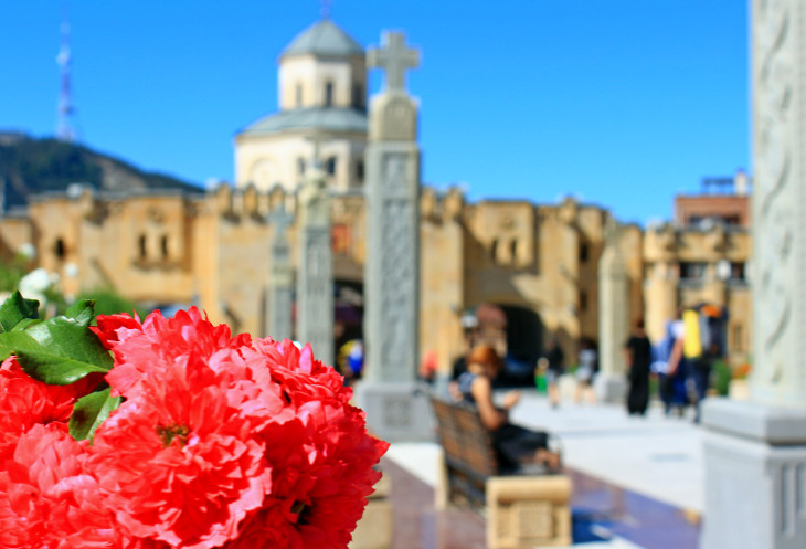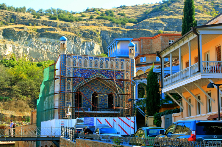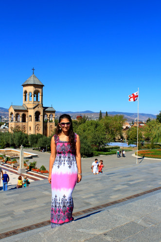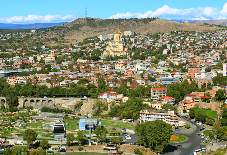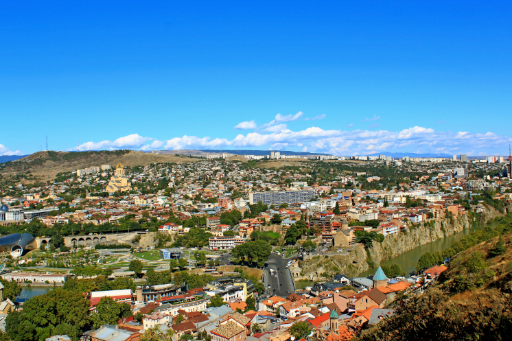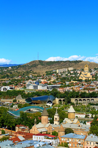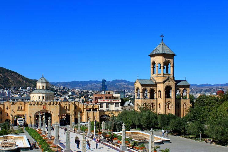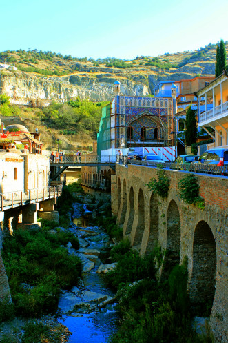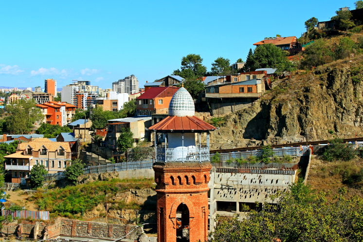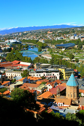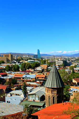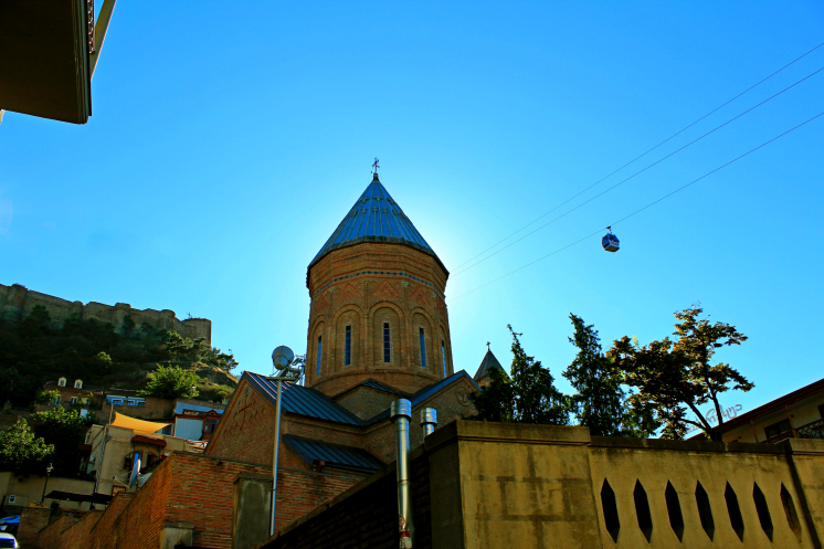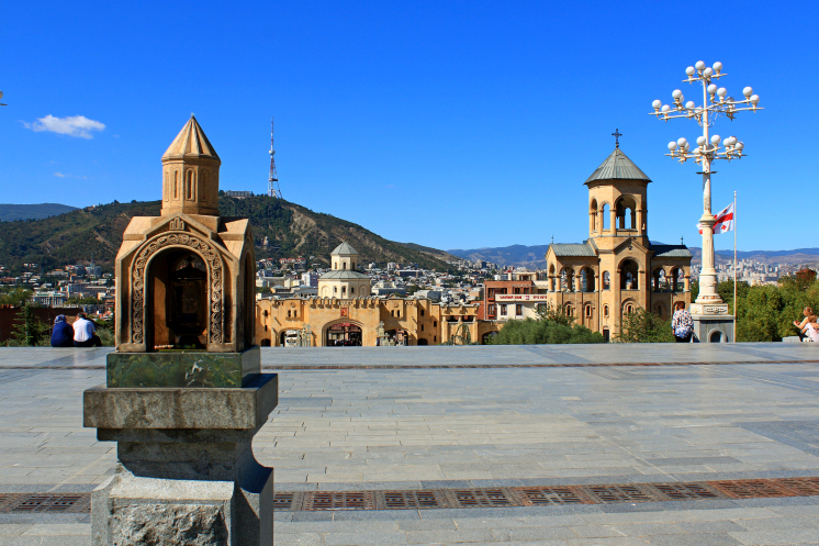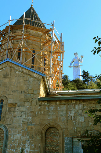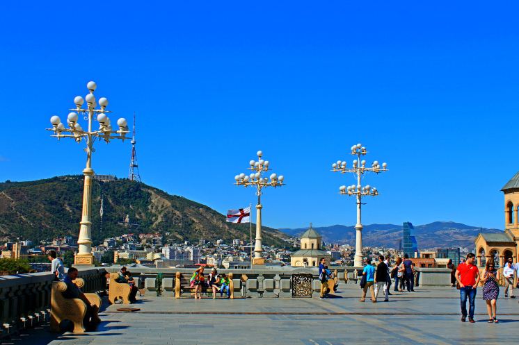 На самой вершине стояла огромная статуя мать-Грузия, а по району Сололаки прогуливались туристы. С холма открывался обширный панорамный вид на весь город, на его старую и новую часть, столь гармонично переплетающихся между собой.