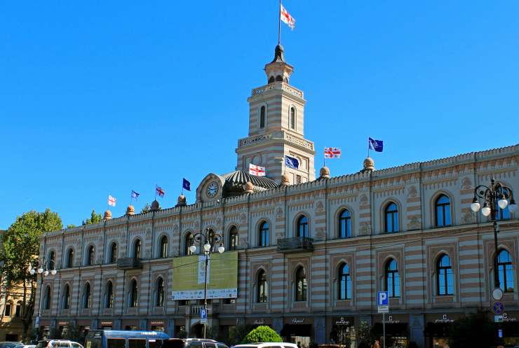 Одна из них приведет вас к площади Давида Строителя, где городской драматический театр Сигнахи соседствует со зданием мэрии.