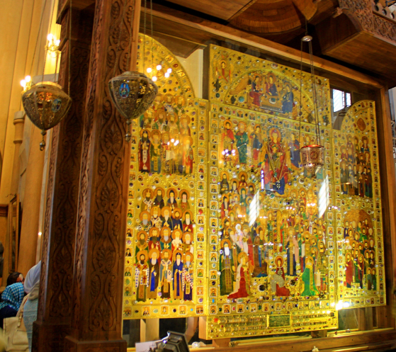 Нарядная, просторная и светлая церковь сама по себе ничем особенным не отличалась. Но примечательны в ней большой лик Христа, многочисленные иконы и реликвии, хранящиеся в стенах храма. Во время нашего воскресного посещения помимо туристов и местных жителей в церкви присутствовали военнослужащие, окружающие священнослужителей.