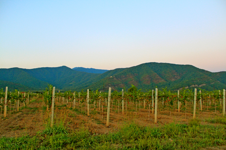 После занимательной, но короткой экскурсии мы купили в местном фирменном магазине лучшие вина Грузии – Хванчкара, Киндзмараули, Усахелаури (самые редкие и уникальные вина) и монастырское на пробу. Загрузив все в машину, мы поехали обратно по Алазанской долине, но в сторону Телави. Осеннее небо ярко освещалось солнцем, уже севшим за горизонт.