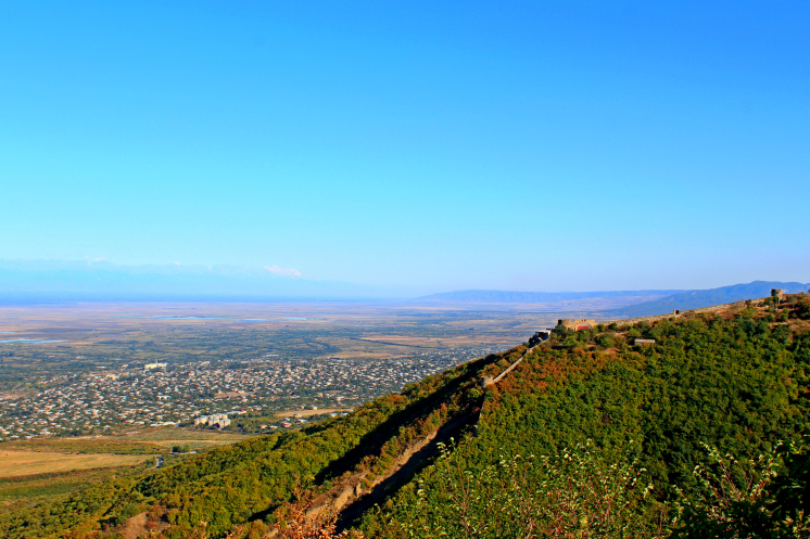 Поднявшись еще выше, можно выйти на площадку, с которого открывается замечательный вид на город и возвышающуюся над городом колокольню церкви Сурб Геворг.