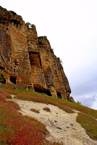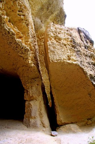 В 10.45 оставили машину на обочине, а сами стали взбираться на гору по крутому склону с осыпающимися камнями. Меньше, чем за час мы забрались к первому ряду пещер, выдолбленных в отвесной скале.