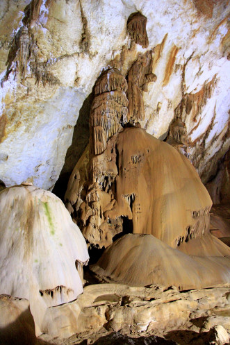 Обвальный зал в конце переходит в музыкальный акустический зал, который находится на 40 метров ниже входа в пещеру. Там же расположены глиняные ванночки, которым дали название Жемчужных озер. Последним залом является Тигровый, который стоит особняком. Узкие проходы, вырытые спелеологами, вели к большой площадке.