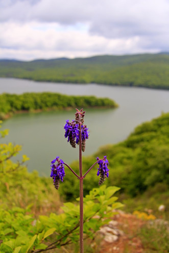 Сделав несколько фотографий у Марсианского озера, мы двинулись дальше к поселку Каштановое. Оставили машину в поселке, а сами пошли к смотровой площадке на горе Лысой, с которой открываются виды на долину реки Альма. Здесь построили дамбу, благодаря чему удалось удержать воду в углублении среди зеленых холмов, и тем самым создать водохранилище удивительной красоты.