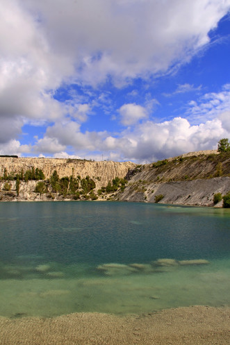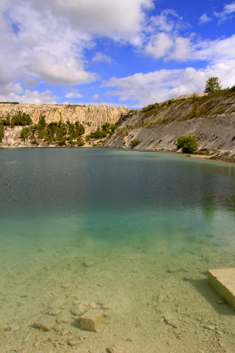 В 3 часа дня мы выехали из Бахчисарая и направились к поселку Скалистое. Пришлось оставить машину на обочине, хотя на внедорожнике можно проехать вплотную к месту, где раньше добывали белоснежный инкерманский известняк. Минут 5 мы шли до карьера, ради которого приехали в Скалистое. Заполненный чистейшей водой карьер под солнечными лучами становился еще более красочным.