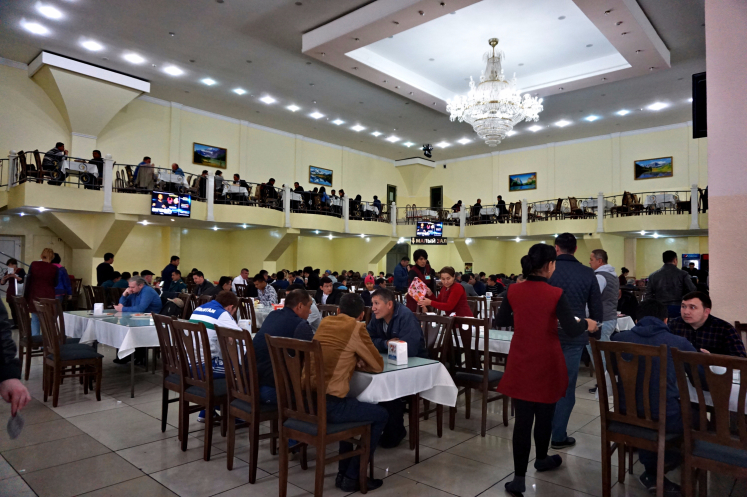 Огромный зал одновременно вмещает до 500 человек. Интерьер зала и посуда просты, ничто здесь не предназначено для долгого время препровождения. Основная идея центра – простота и быстрота обслуживания нескольких тысяч клиентов ежедневно.