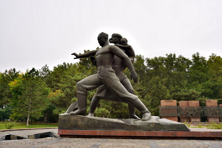 Раньше на месте скульптуры «Скорбящей матери» находился памятник неизвестному солдату. И такая история наблюдается в других городах Узбекистана: вместо привычного советского «Солдата-освободителя» установлена скульптура «Скорбящая мать», а рядом в галерее-айване – книги-памяти с именами погибших на войне местных жителей.