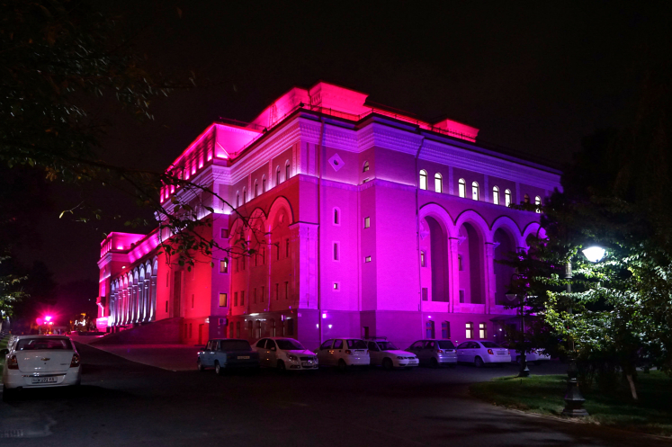 Но самое интересное увидеть не удалось. Дильбар говорила, что к театральному разъезду на фасадах подсветкой создается характерный рисунок узбекского шелка. Что делать! Поезд ждать не будет!