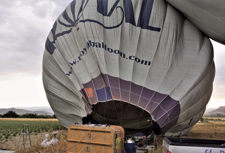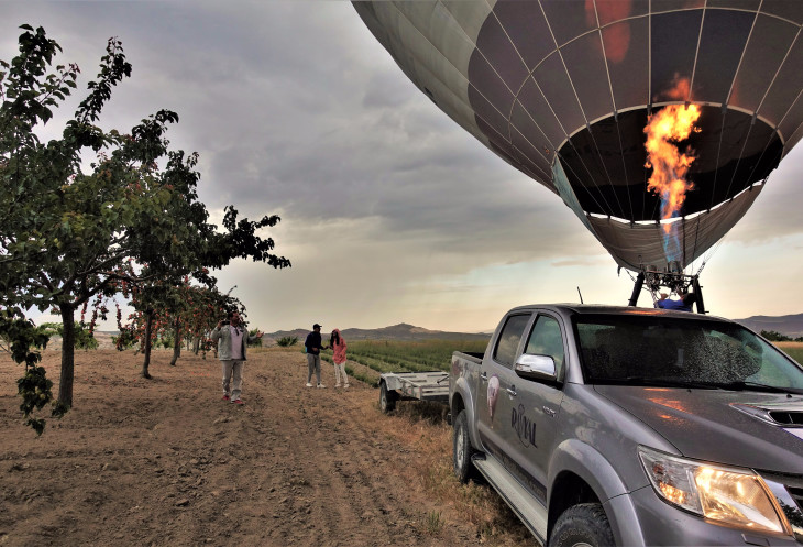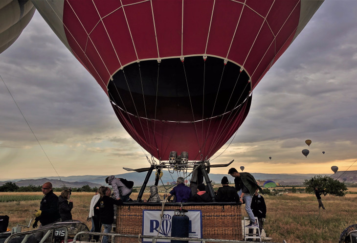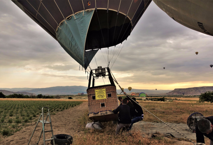 Но когда, наконец, за нами приехали, оказалось, что полетим мы с одной из самых дальних площадок и в корзине на четверых! На таких корзинах обычно делают предложение руки и сердца. В небесах. Но судьба распорядилась так, что влюблённые не смогли приехать, а наша Кристина(гид), смогла «выцарапать» для нас этот полёт. Причём по цене обычной 20-местной корзины (а разница в цене немаленькая!) Все остальные летали в корзинах на 20 человек, плотненько сбившись в кучку. С нами летала ещё пара молодых и очень культурных, приятных, воспитанных китайцев (что тоже чудо).
