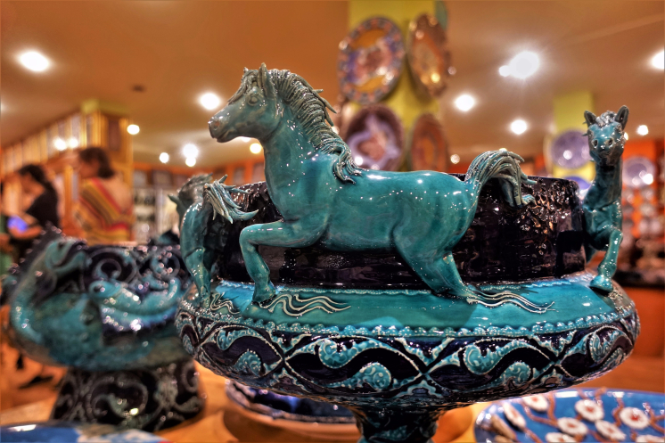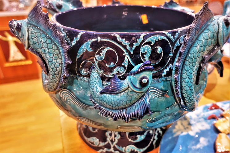 Тут же при мастерской - магазин, где вся эта красота продаётся. Отдельный зал- для произведений мастеров своего дела, отдельный – для работ учеников. Красиво, конечно.