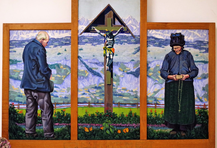 Картинy я не успела разглядеть, так как войдя внутрь часовни на меня, с фотографии, смотрела пожилая фрау, которая несомненно и находилась в том гробу, на котором стояла ее фотография. После увиденного я решила осмотр часовни отложить до следующего приезда в Бриг.