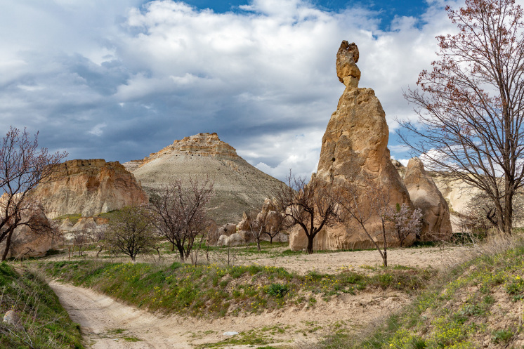 На полпути мне встретился австрийский дядька в ковбойской шляпе, который пообещал своим детям красивые фотографии из Каппадокии и, видимо, как раз нашёл то место, где ему нужно во что бы то ни стало сфотографироваться, а никого вокруг нет. Не знаю сколько он там ждал (кроме него я больше никого здесь не встретил), но когда меня увидел, ещё издалека стал громко орать и махать мне руками чтобы я точно не прошёл мимо.