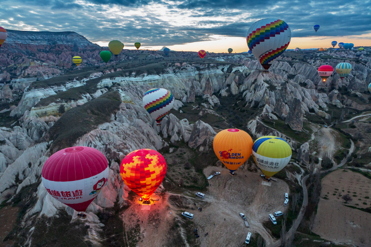К 5 утра я был готов и ждал в условленном месте. Минут через 15 мои турецкие друзья появились и ещё через 15 мы уже были на площадке для взлётов. Машины с шарами стояли на позициях, автобусы с туристами тоже потихоньку подъезжали к своим площадкам, но шары почему-то не надували. Их даже не расчехляли, корзины так и стояли на своих перевозках. Мы узнали, что служба управления полётами пока не даёт разрешения из-за ухудшения погодных условий и всё, что остаётся - ждать. Погода на самом деле ухудшилась за ночь. Натянуло облачность и изредка накрапывал мелкий дождик. Экипажи с шарами в готовности провели на стартовых площадках больше часа в ожидании разрешения, но его так и не дали. Людей развезли назад по отелям.