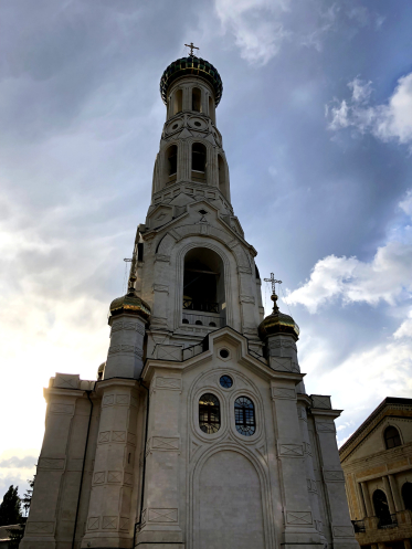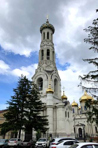 Проспект Октябрьской революции ведет нас к Крепостной горе, названной так именно потому, что там была возведена самая настоящая военная крепость конца XVIII в. – одно из укреплений Азово-Моздокской военной линии. Сейчас от самой крепости за ненадобностью мало что осталось – камень жители растащили на постройки, но место – музей под открытым небом – изобилует указателями и описаниями, что где было и зачем. На горе есть и обзорная площадка – «воздушная набережная» города, и Казанский собор с одной из самых замечательных колоколен, и памятник генералу Иосифу Родионовичу Апанасенко – герою двух войн – I мировой и Великой Отечественной, погибшему 5 августа 1943 года под Белгородом, завещавшему похоронить себя на родной земле…