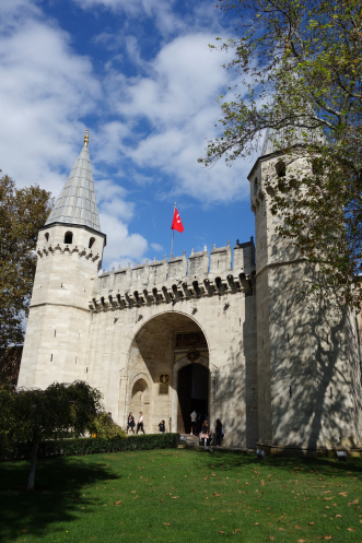 В Топкапы очередь на вход была поменьше, чем в прежние мои посещения, но зато мы потеряли кучу времени, пока ждали, когда гиду передадут QR-код на вход группы в музей. Так как это был мой третий визит, то к беглой экскурсии я отнеслась спокойно, а подруга осталась неудовлетворенной: она ожидала увидеть какие-то места, фигурировавшие в фильме «Великолепный век», но увы. Я с ней (и еще пятью туристками из группы) даже сходила в гарем, но там, по-моему, закрыли еще больше помещений на реставрацию, да и просто бежать по помещениям (гид дал очень мало времени) — это совсем не то, что смотреть с комментариями сопровождавшей нас в прошлый раз нашей бывшей соотечественницей Иларией.