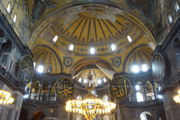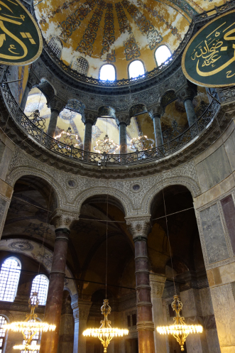 Перед входом в Голубую мечеть одна туристка устроила скандал, почему ее не предупредили, что в мечетях надо разуваться (это ж кем надо быть, чтобы этого не знать!): у ее мужа больная нога, он разуваться не может, она бы бахилы взяла с собой (пустил бы кто его в бахилах!). Ну дала я ей бахилы (остались в сумочке после досмотра в аэропорту), чтобы замолкла и дала гиду вести экскурсию. Муж бахилы не надел и остался на улице. А перед Айя Софией она подняла шум, что ее не предупредили, что в мечеть женщинам надо с покрытой головой (перед Голубой мечетью был пункт раздачи платков, а тут она его не нашла — хотя он тоже был) и еще спросила у меня, нет ли у меня запасной маски, а то она свою потеряла (вот правда: дайте попить, а то так есть хочется, что переночевать негде).