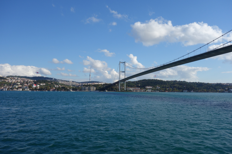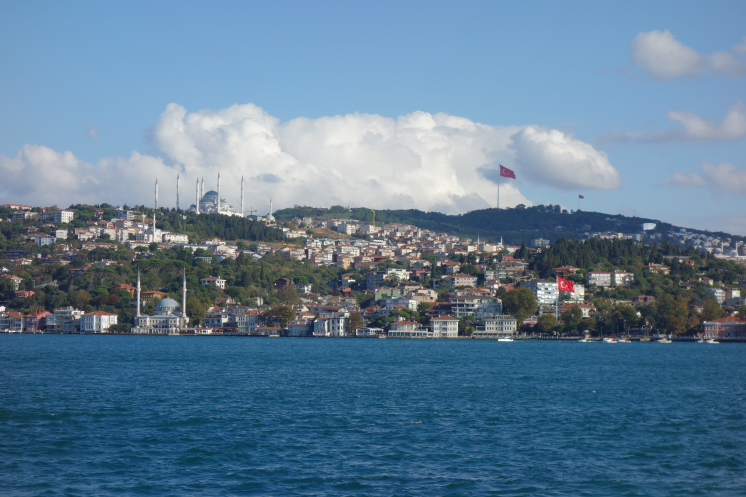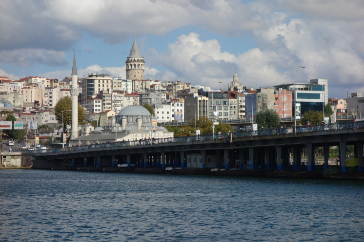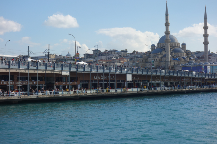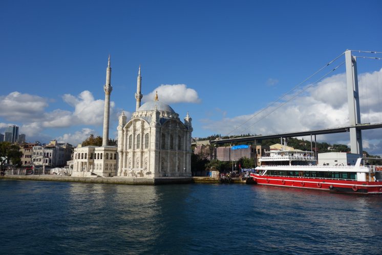 Круиз по Босфору в этот раз включал заход в бухту Золотой рог, что порадовало. Холод на палубе был нешуточный, хотя мы вроде и подготовились, так что подруга в конце концов не выдержала и сбежала вниз, погреться чаем. После экскурсии нас развозили по отелям, но из-за пробок мы решили выйти раньше — пешком было быстрее. К тому времени мы уже немного представляли окрестности, да и было еще светло. Я уже ночевала в этом отеле перед прошлым туром, но тогда после долгого экскурсионного дня по Стамбулу мне было не до окрестностей.