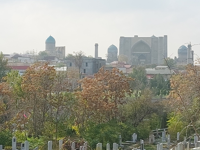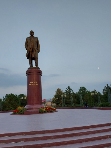 Хотя в программе было посещение обсерватории Улугбека, мы поверили экскурсоводу на слово, что там ничего не осталось, и не поехали к развалинам. Зато заехали взглянуть на мавзолей Ислама Каримова, отстроенный с восточной пышностью. По словам гида, президент был «прост, как Ленин», запрещал при жизни вешать свои портреты в кабинетах, а быть похороненным хотел на кладбище в Самарканде, рядом со своими родными. Но после его смерти благодарные сограждане непрерывным потоком шли к его могиле, что заставило построить достойный мавзолей. Судить не берусь, «восток – дело тонкое».