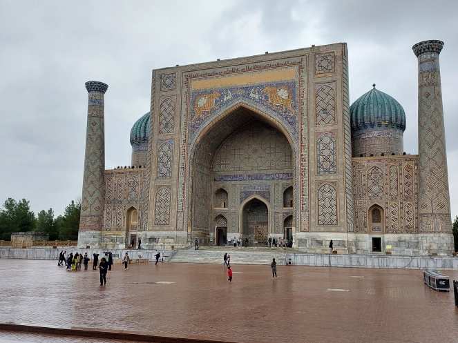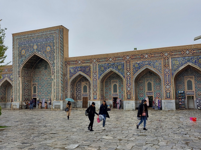 В Самарканде мы с опаской ожидали заселения в отель: он тоже относится с сети Рейкарнц, только в этот раз Регистон. Но этот отель оказался получше своего собрата: и чайник-холодильник есть, и моющие средства, и воды две бутылки по 0,5 стояло. Правда...