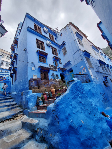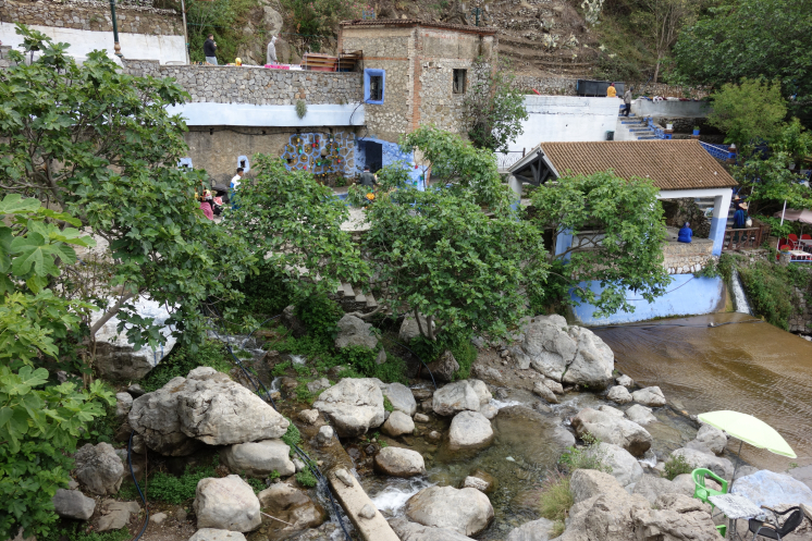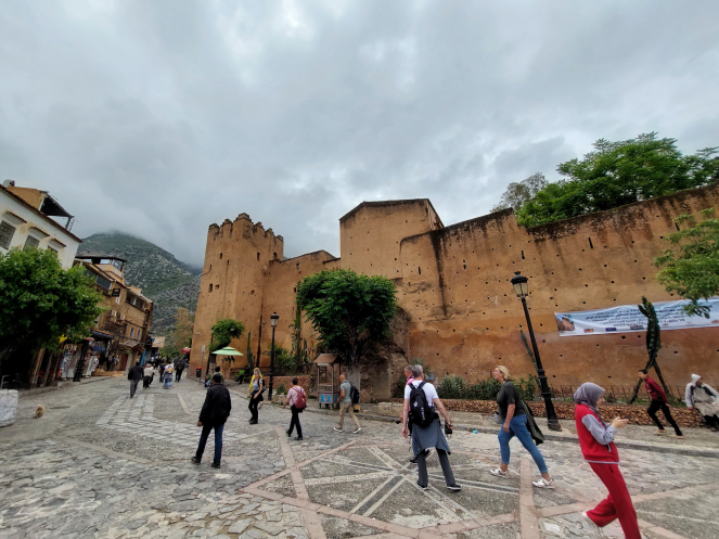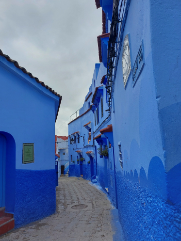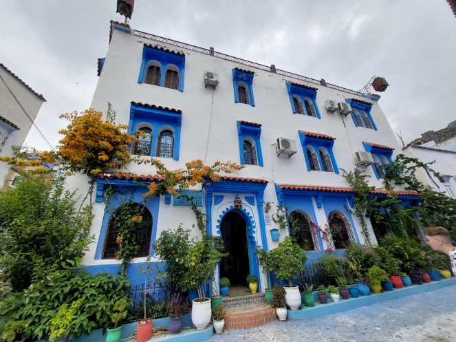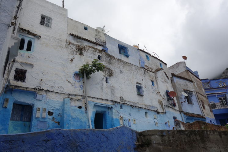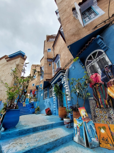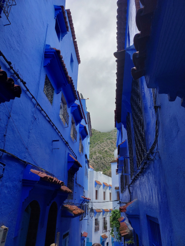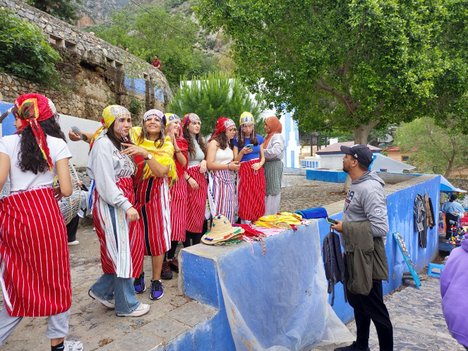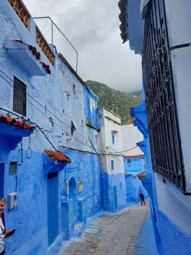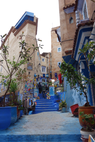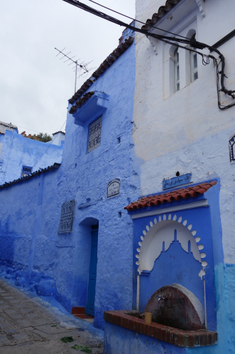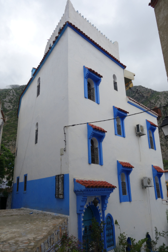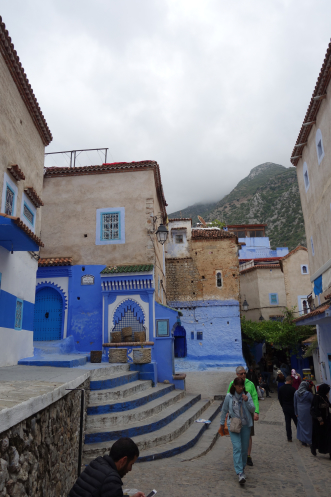 Наутро мы двинулись в Шефшауэн, очень живописный городок, основанный в 15 веке. Мне он напомнил португальский Обидуш, но более нарядный: в Обидуше дома частично украшены синей и охряной побелкой, а здесь дома практически целиком синие. Еще город известен довольно редким для Марокко 8-гранным минаретом у древней мечети. Молодые девушки специально принарядились для фотосессии и фотографировались на каждом углу, а часто и ролики снимали, спуск по узкой крутой улочке, например. Гид разрывался между обеими, снимая то одну, то другую, и остальные туристы помогали. Мне это чуждо, я старалась сделать снимки так, чтобы в кадр попало как можно меньше посторонних людей. Подруга тоже не любительница фотографироваться и тем более выкладывать куда-то свои снимки.