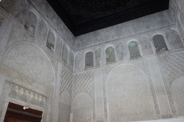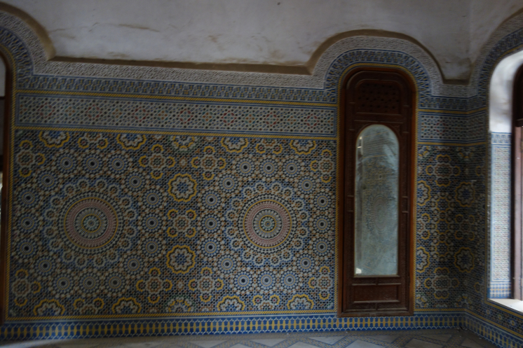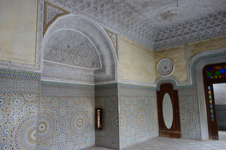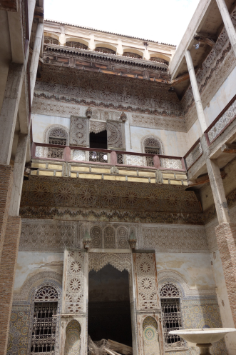 Еще запомнилось огромное количество кошек и котят, особенно в продуктовых торговых рядах. Гид договорился, чтобы за символическую плату сторож пустил нас в заброшенный больше века назад дом богатой марокканской семьи. Потомки хозяина живут где-то в Европе, им не до этого дома. Дом, несмотря на плачевное состояние, очень впечатляет. Как сказала молодая туристка: «Я хотела бы тут жить!». Один из внутренних двориков с остатками садика разделен на четыре части – признак того, что в доме был гарем. Глядя на остатки изразцовой облицовки стен, резные потолки, разноцветные стекла в остатках окон, легко представить, как там было красиво. Кто-то заикался про свободное время, но Идрис был прав: из средневековых закоулков все в конце концов бы вышли к назначенному месту, вопрос только, когда.