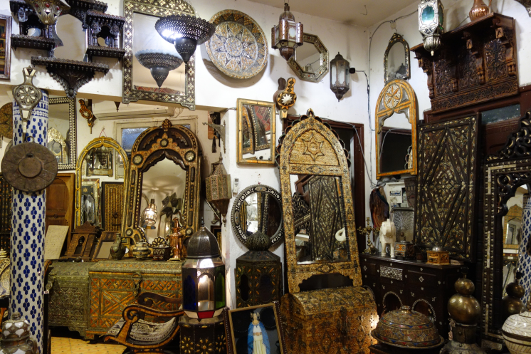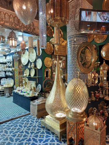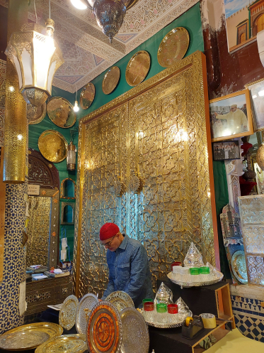Наконец ковер был куплен и упакован, а мы двинулись в мастерскую чеканщика, чей дедушка выковал знаменитые ворота королевского дворца. Опять же было сказано, что здесь гарантируется качество товара. Мастерская интересная: кроме основного производимого тут же товара, в лавке стояли предметы старинного обихода – сундучки всякие, зеркала в рамах. И здесь наша группа «сделала вклад в местную экономику», по меткому выражению гида, с которым я когда-то ездила в Турции «По следам великих цивилизаций». Одна женщина купила серебряный заварной чайник, о котором мечтала. Вряд ли он чисто серебряный, но точно не из нержавейки. Может, и еще кто-то что-то купил: народ смотрел женские украшения.