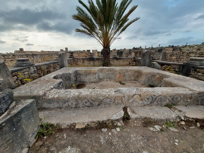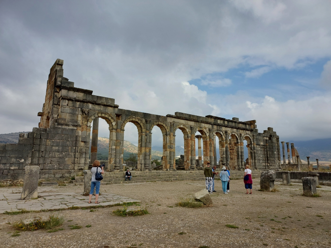 По плану мы должны были посетить Волюбилис на следующий день, после ночевки в Фесе, но Идрис здраво решил, что лучше заехать на развалины древнеримского города по пути, а не возвращаться обратно. Снова пожалела, что мы не посещаем ни одного музея: от большинства домов остались только мозаичные полы, где-то жернова для оливкового масла, на форуме колонны храма, термы, неплохо сохранилась триумфальная арка. Но все мобильные находки хранятся где-то в музеях, в основном, в Рабате.