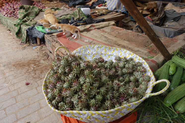 С территории раскопок открывается вид на священный для мусульман Марокко городок Мулай-Идрис, где находится мавзолей основателя первого мусульманского государства на марокканской земле в конце 8 века. Когда из-за туч выглядывало солнце, белые домики на склоне горы смотрелись очень эффектно. После Волюбилиса гид завез нас в Мекнес, исторический центр которого внесен в список культурного наследия ЮНЕСКО. Кстати, для украшения мавзолея в Мекнесе был разграблен Волюбилис и дворец Саадитов в Марракеше. Но нашей целью было не посещение древностей, а закупка серого вина. Я по своей темноте о таком раньше не слышала, по виду оно чуть бледнее розового. Сначала мы остановились у магазина Carrefour, французского Перекрестка. Винного отдела в нем не оказалось, но сотрудники показали Идрису находящийся неподалеку магазинчик с искомым товаром. Наша группа произвела фурор: за оставшиеся до закрытия 20 минут русские туристы смели полмагазина. Идрис решил, что народ набирает вино на подарки домой и сказал, что это можно будет сделать в Агадире, ближе к концу путешествия, но он ошибался – народ запасался для местного употребления. Мы тоже взяли пару бутылок серого – надо же попробовать местную продукцию, и местного же пива.